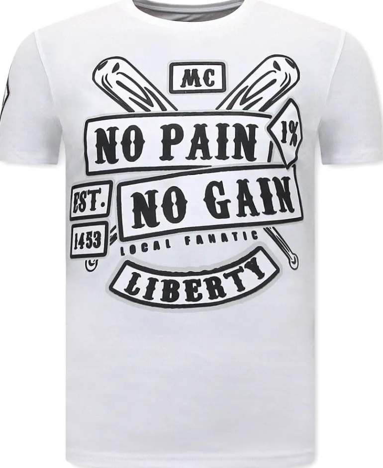 – T-shirt Heren – Mc No Pain No Gain 1% – Wit