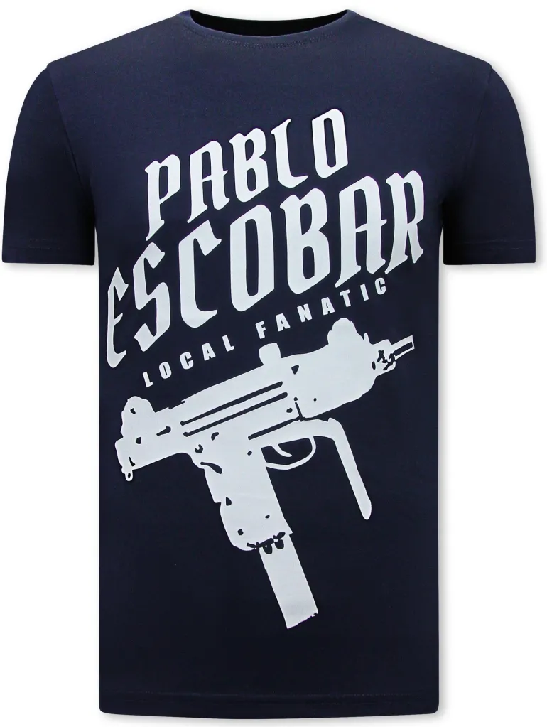 – T-shirt Heren – Pablo Escobar Uzi – Blauw