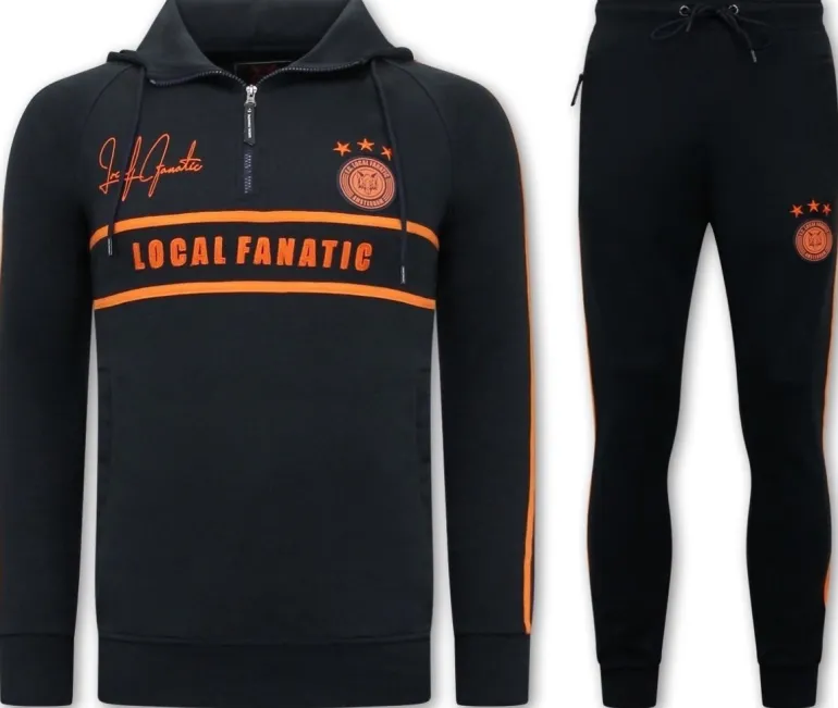 – Trainingspak Heren – Double Striped – Blauw / Oranje